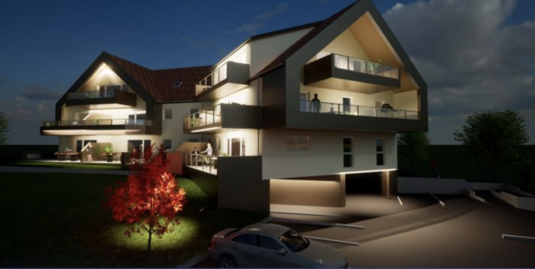 Venez découvrir ce nouveau programme "Le Cèdre", au centre de Truchtersheim appartement 3 pièces d’environ 64 m² habitables au premier étage d’un immeuble de 13 logements comprenant : une entrée, deux chambres, une cuisine ouverte sur le séjour, une salle d’eau, un balcon, une place de parking extérieur et un garage complètent le bien.